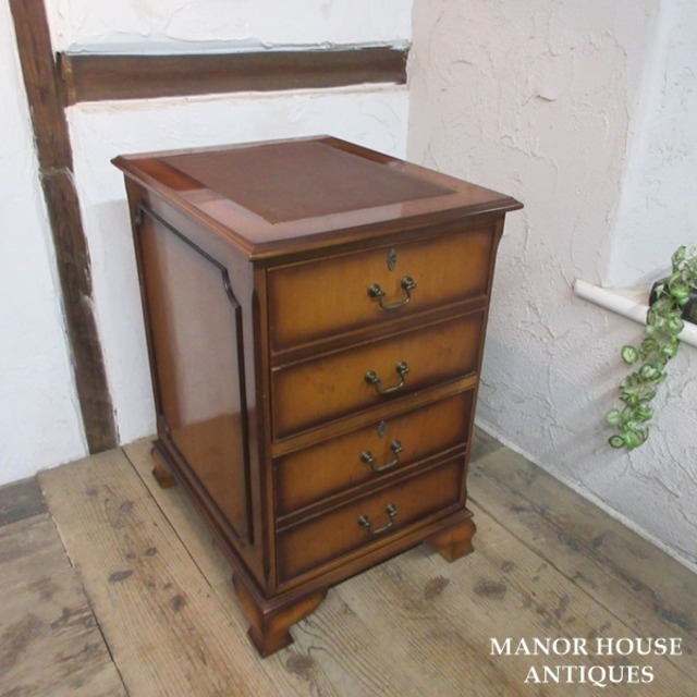 イギリス アンティーク 家具 ファイルキャビネット サイドチェスト 2段引き出し 収納 木製 イチイ 英国 OTHERFUNITURE 6189e