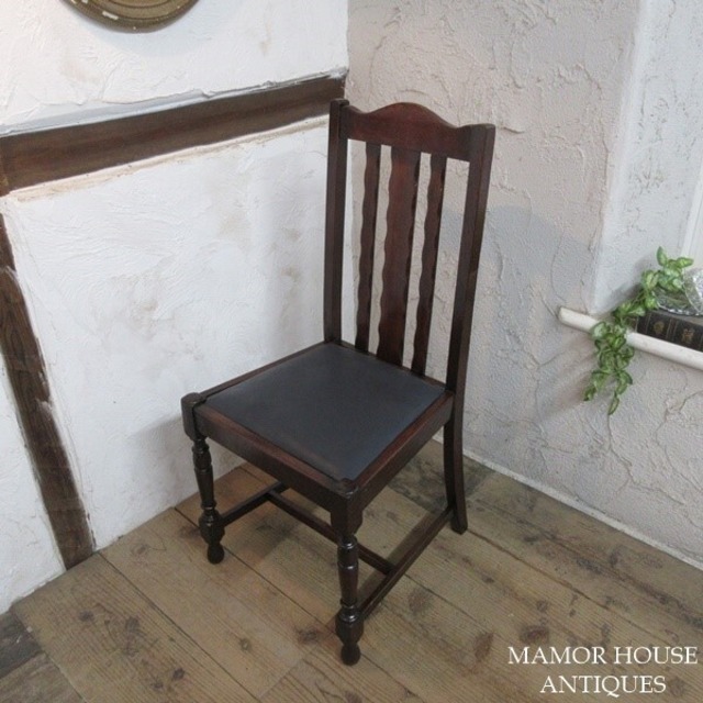イギリス アンティーク 家具 ダイニングチェア リアルレザー 椅子 イス 店舗什器 カフェ 木製 オーク 英国 DININGCHAIR 4662e
