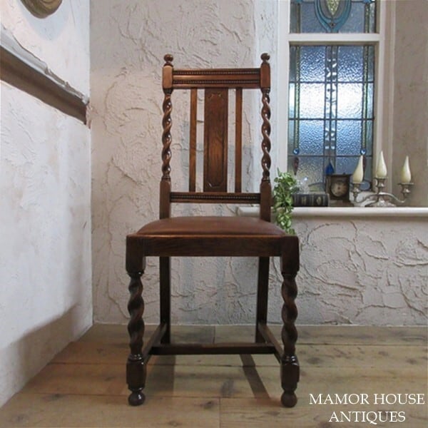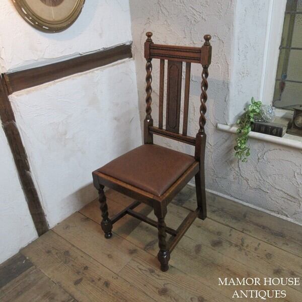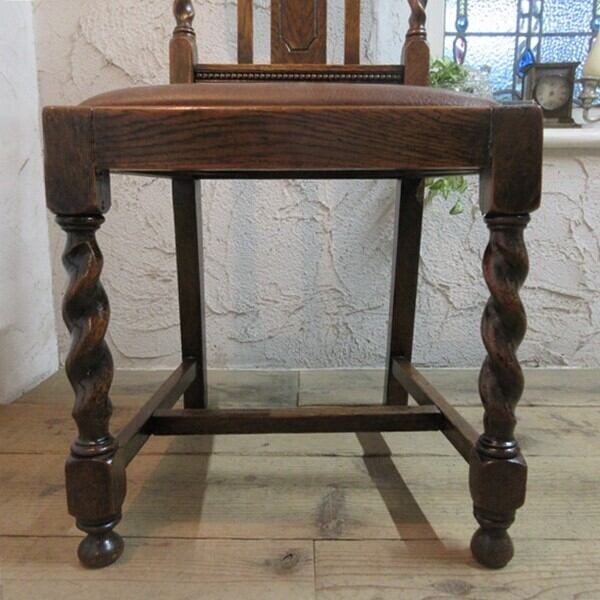 イギリス アンティーク 家具 ダイニングチェア ツイストレッグ 椅子 イス 木製 オーク 英国 DININGCHAIR 4667e