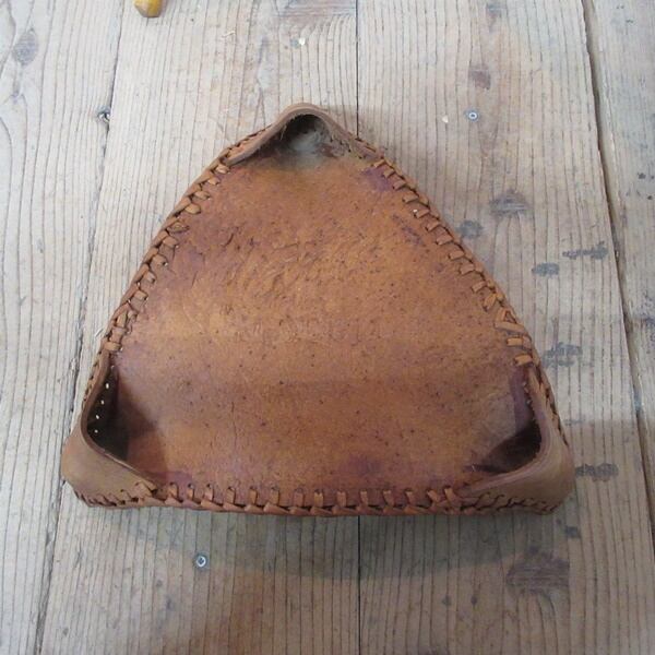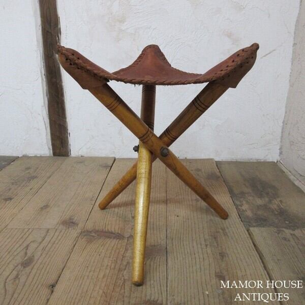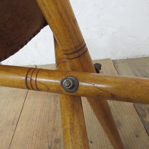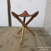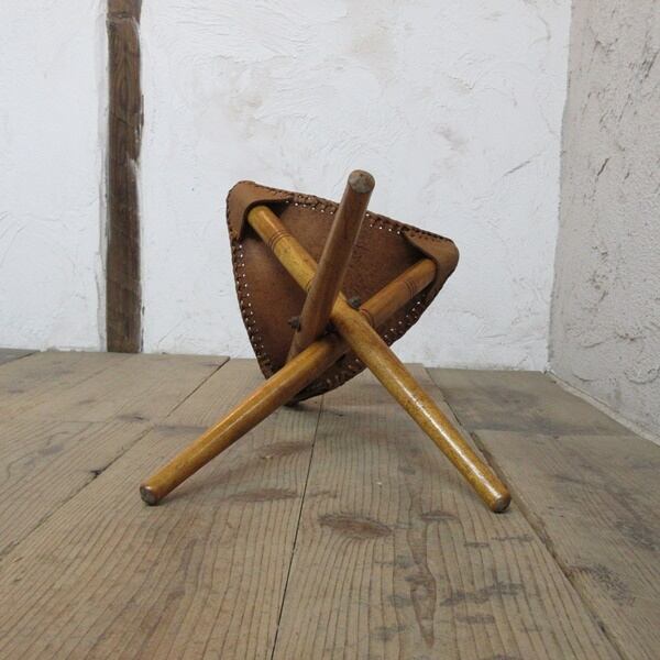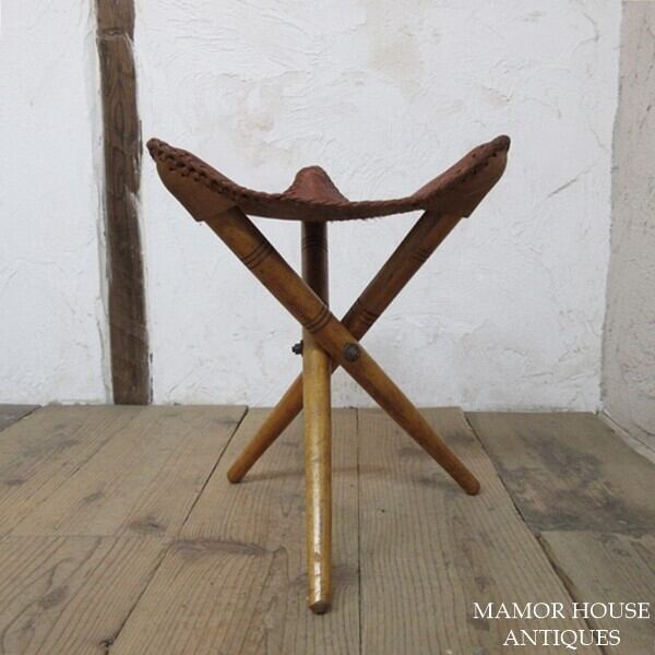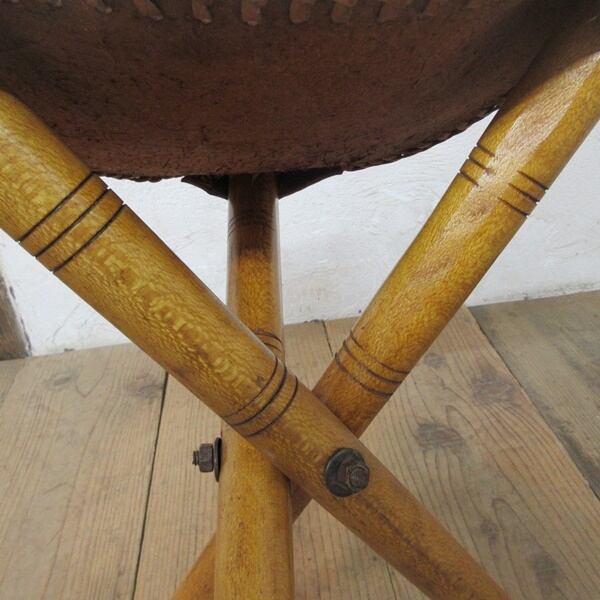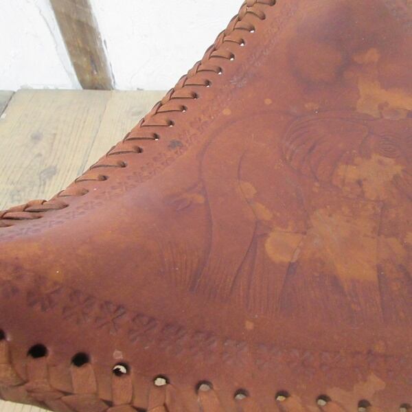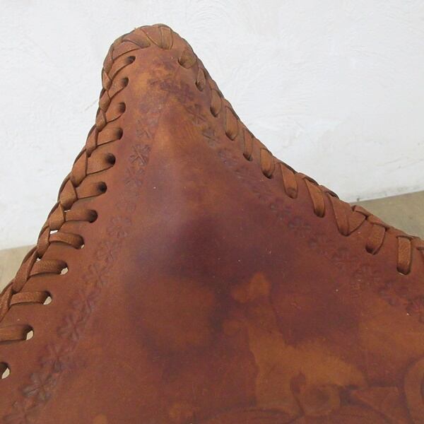 象が描かれているリアルレザーが使用されたスツールです。脚を畳んでコンパクトにできます。