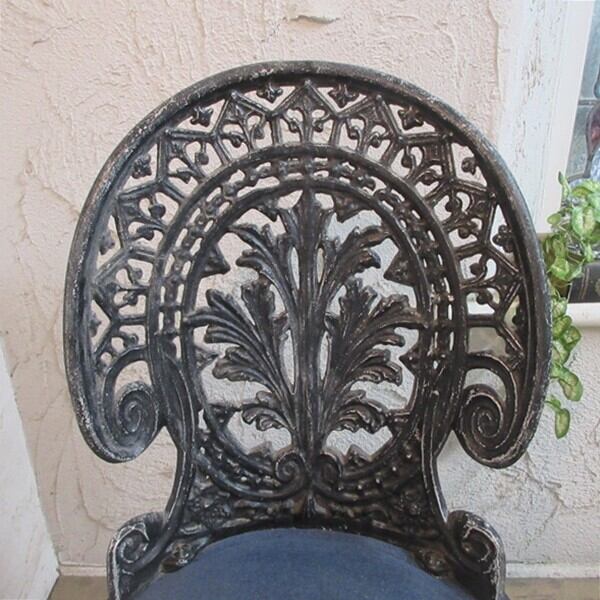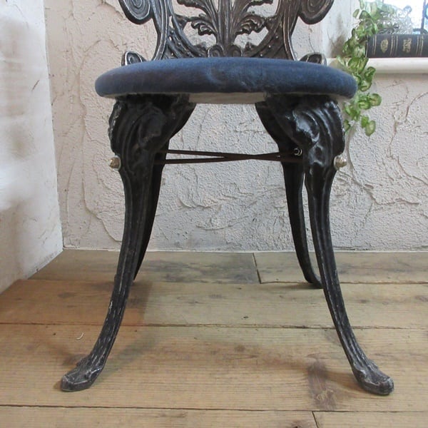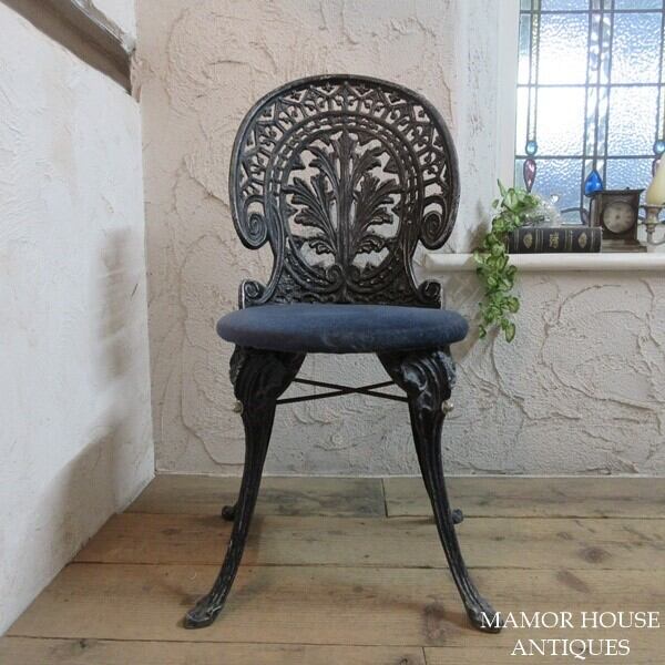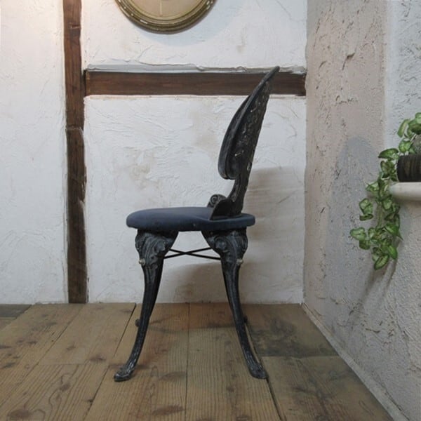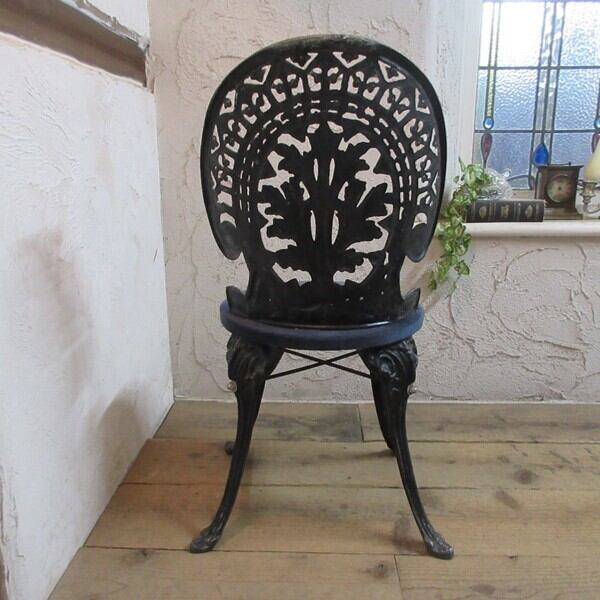 非常に丈夫なアイアン製のチェアです。背もたれや脚のデザインも凝っている素敵なお品です。