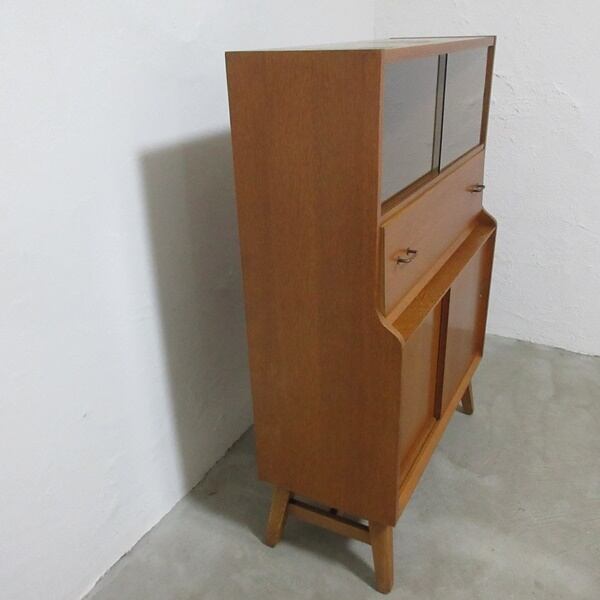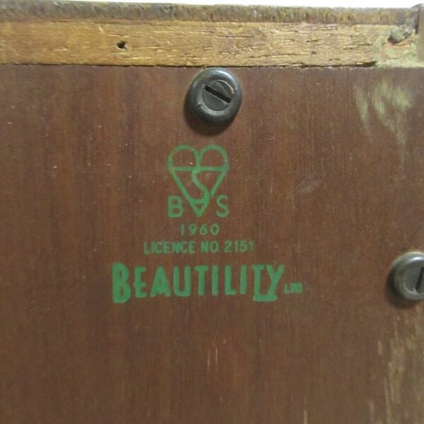 【Beautility(ビューティリティ)】…Beautility社はG-PLAN、McIntoshと並びイギリスのミッドセンチュリーを代表する、老舗の家具メーカー。1896年、サイモン・サドフスキーが“Sadovsky”Cabinet Makersを設立。その後、1929年に「Beautility Furniture」に改名しました。バラエティに富んだ個性的な取っ手や、すっきりとしたスタイリッシュな脚のデザインが特徴です。