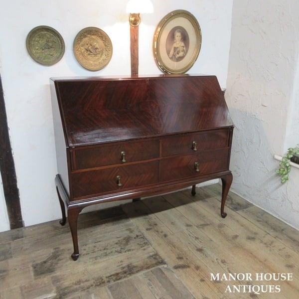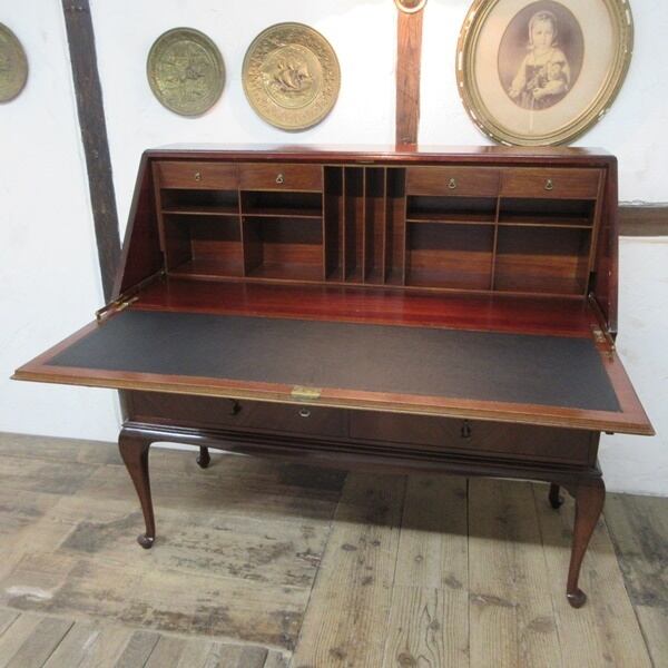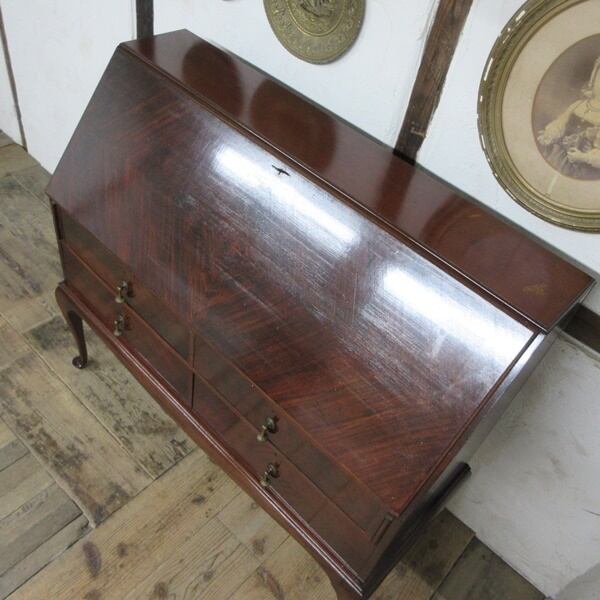 イギリス アンティーク 家具 ライティングビューロー 猫脚 本棚 デスク 机 引き出し 収納 木製 マホガニー 英国 BUREAU 6996d