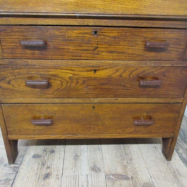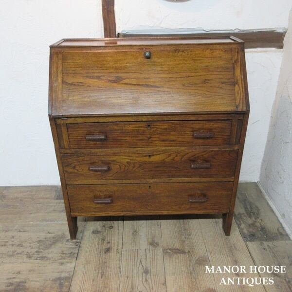 イギリス アンティーク 家具 ライティングビューロー 3段引き出し 本棚 デスク 机 収納 木製 オーク 英国 BUREAU 6024e
