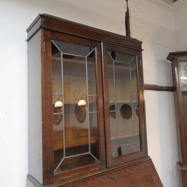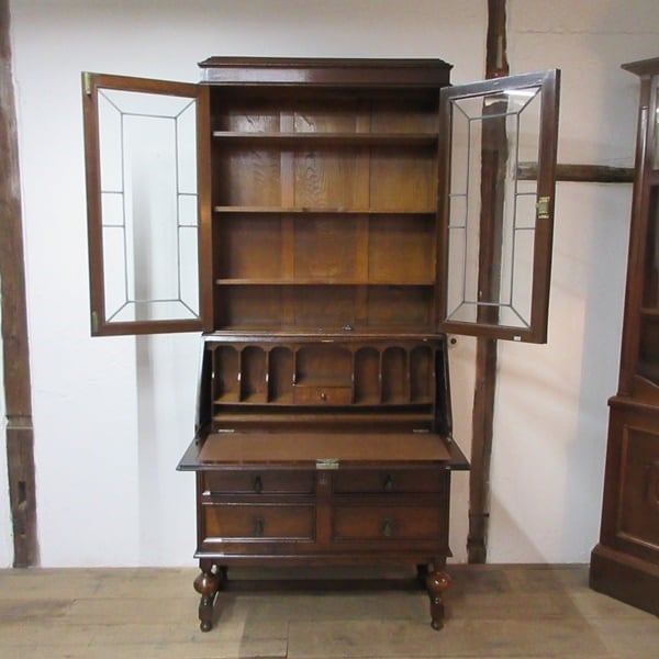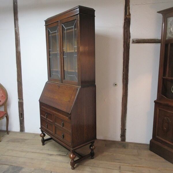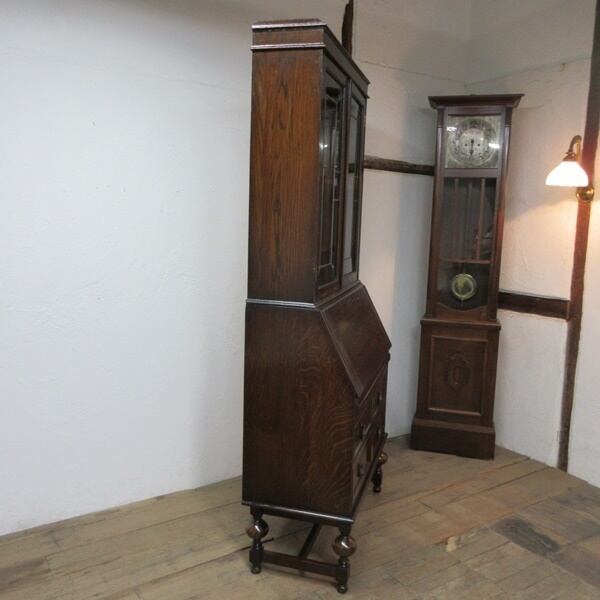イギリス アンティーク 家具 ビューローブックケース 猫脚 デスク 本棚 机 収納 店舗什器 木製 オーク 英国 BUREAU 6031e