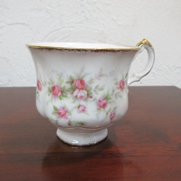 こちらは、1966年発表の「ビクトリアナローズ」。ロイヤルアルバートと合併された後もデザインは引き継がれ1996年まで販売された、ロングセラーシリーズです。