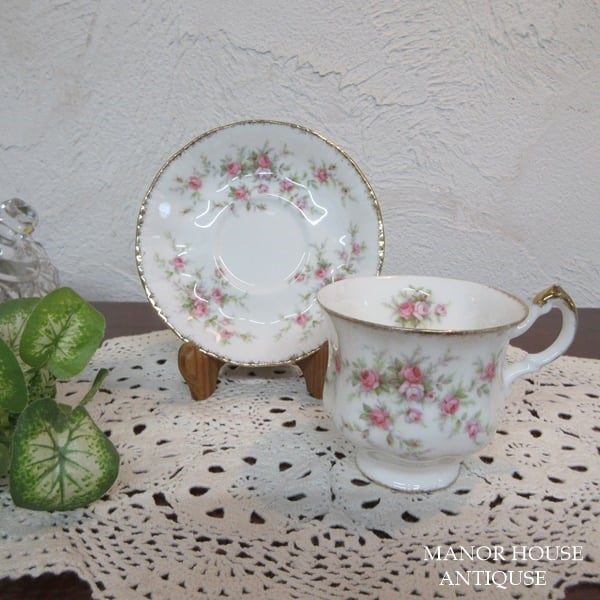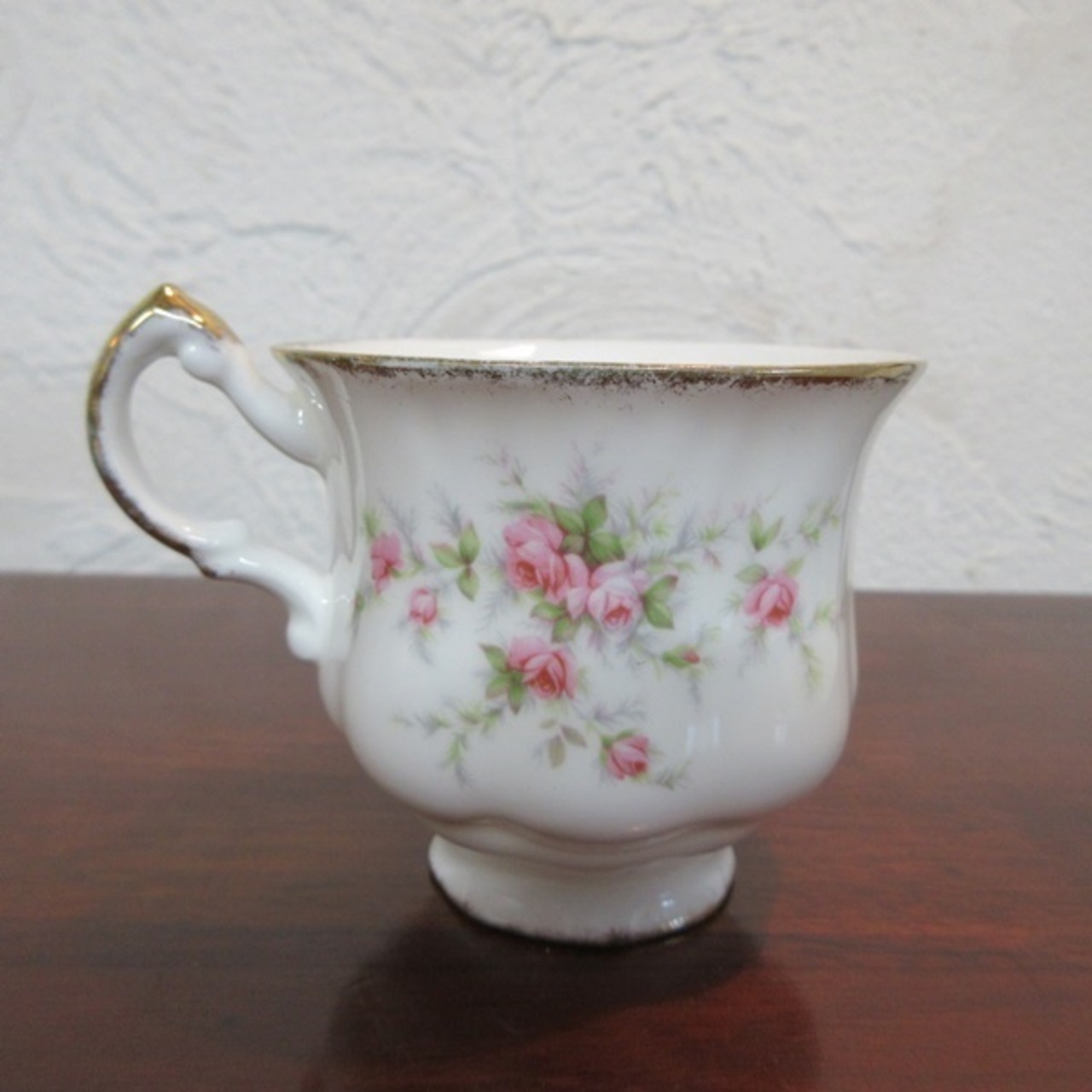 こちらは、1966年発表の「ビクトリアナローズ」。ロイヤルアルバートと合併された後もデザインは引き継がれ1996年まで販売された、ロングセラーシリーズです。