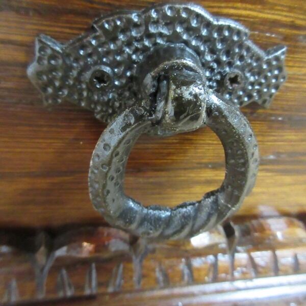 背面側の上の取っ手はリングの部分が折れておりましたので、接着剤にて固定してございます。