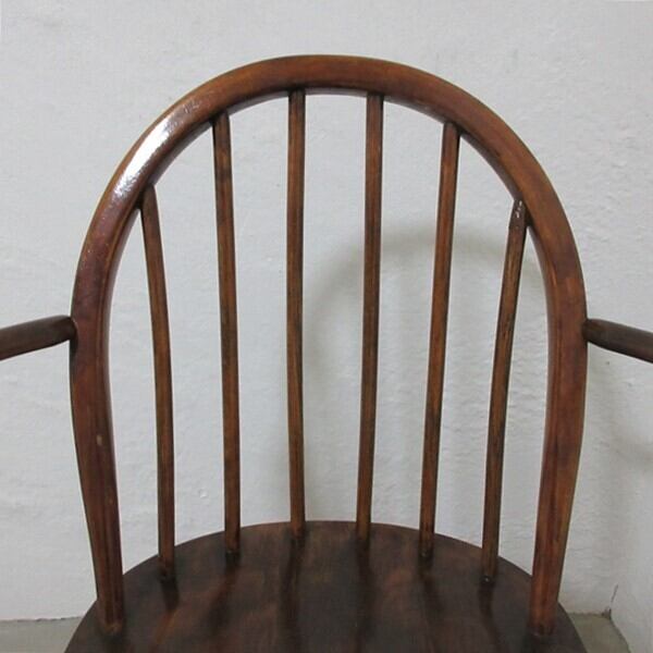 この商品は6本スポーク、ストレートの直線脚タイプのフープバックチェアです。脚がストレートの直線脚タイプのものはダイニング用として食事をするときのことを考えられて作られました。