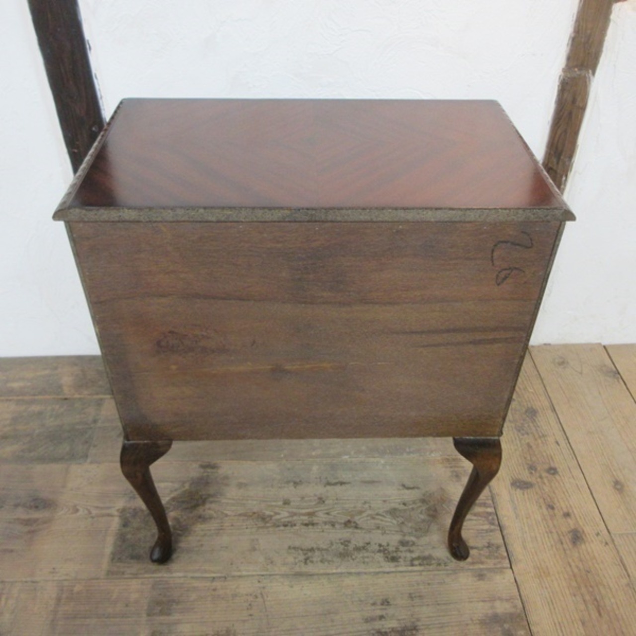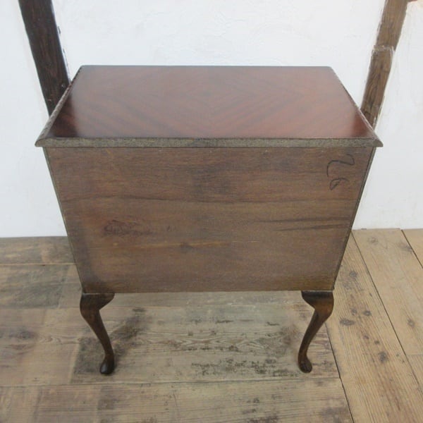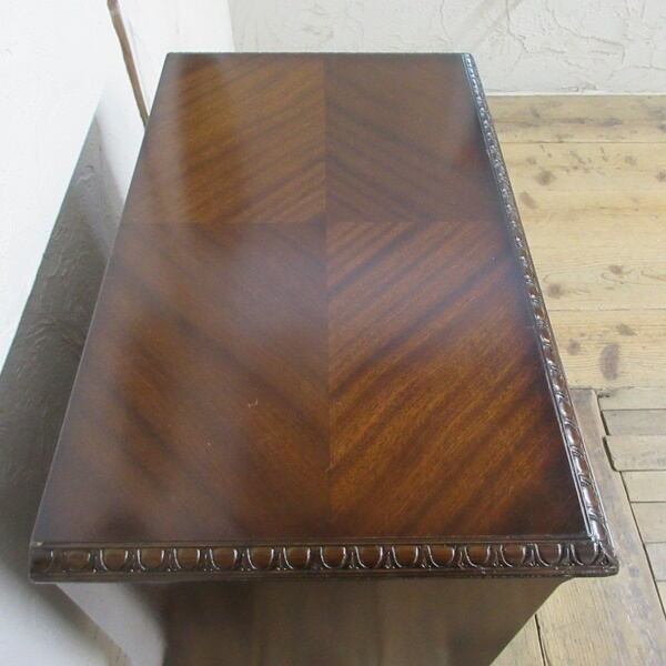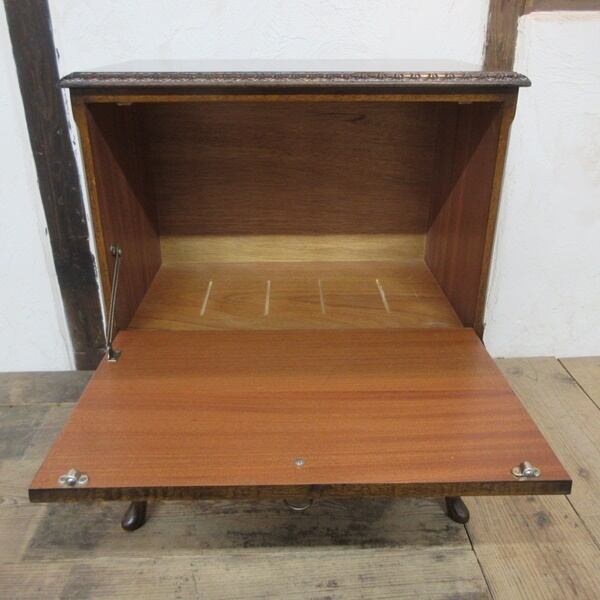 マホガニーの木目が綺麗で猫脚のスタイルがエレガントなお品です。中はA4ファイルが納まるサイズですので、書類整理などにもおススメです。