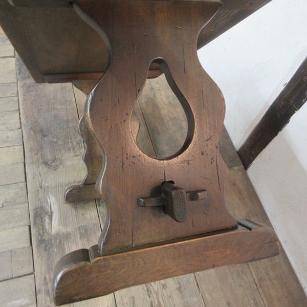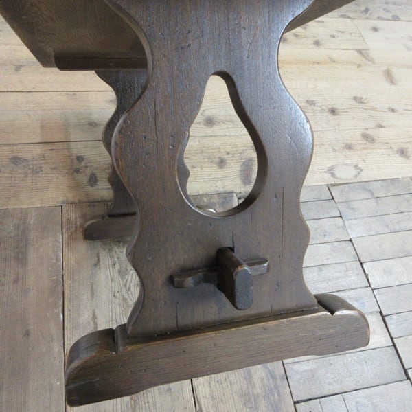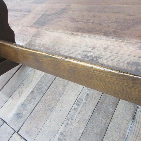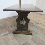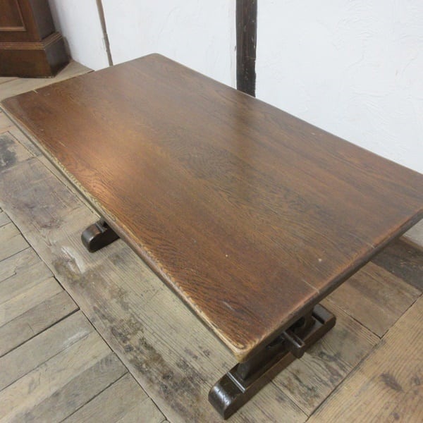 リフェクトリーのダイニングテーブルのようなデザインのコーヒーテーブル。オーク無垢材使用の味のある雰囲気が落ち着きます。