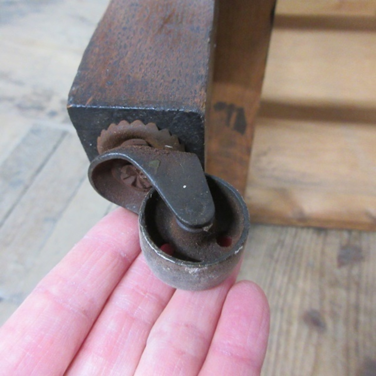 元々はドレッシングチェストだったようで、背面やトップに跡がございます。