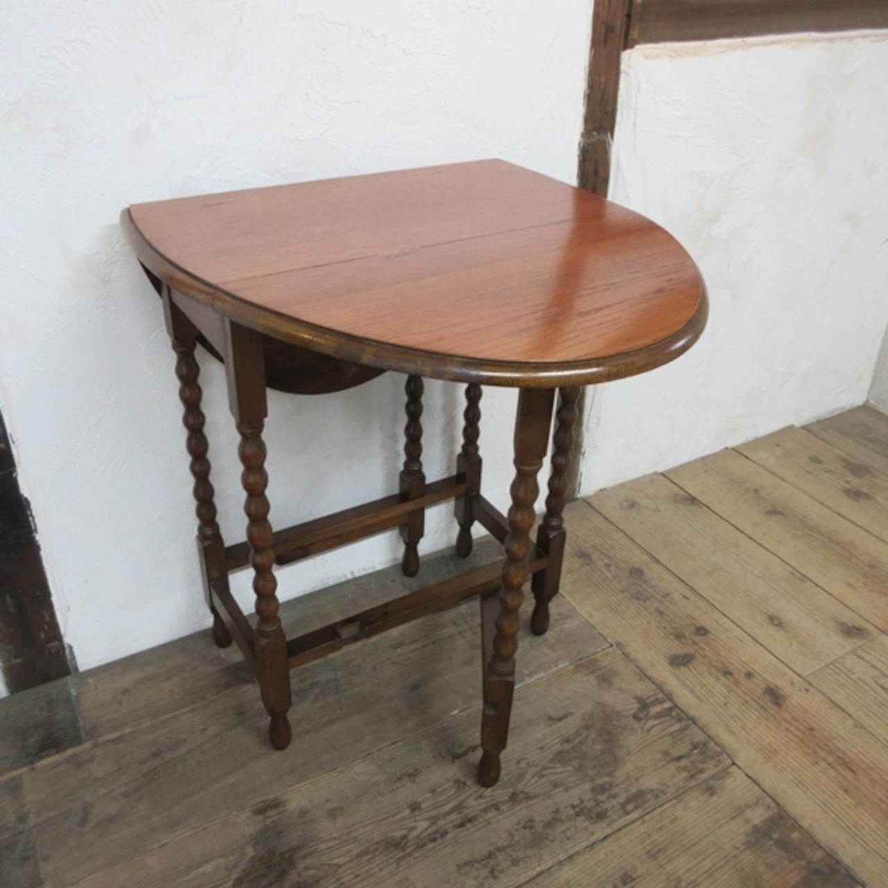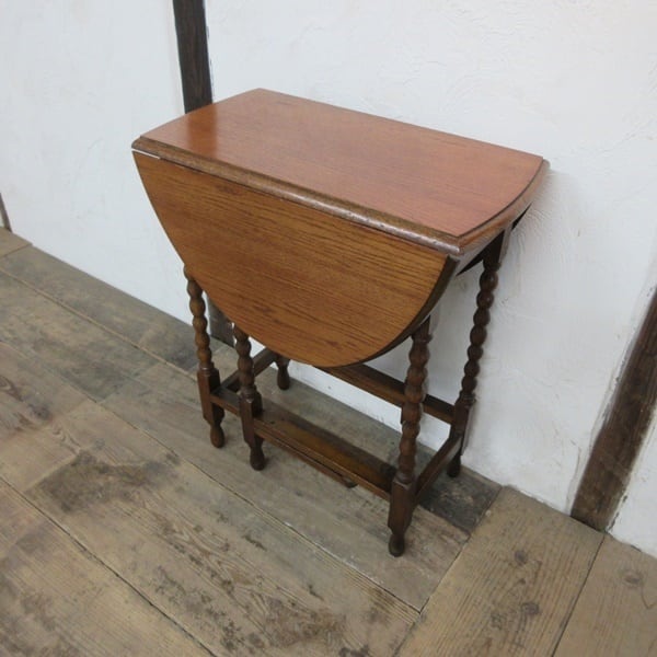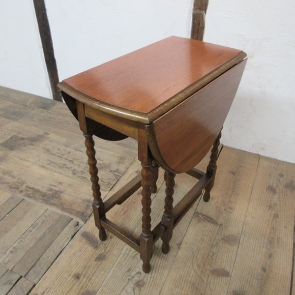 こちらは、ポコポコとした丸い球体が連なったような可愛らしいボビンレッグが特徴のお品。ボビンレッグは、別名「スピンドルレッグ」や「スプールレッグ」とも呼ばれております。スモールサイズで持ち運びし易い大きさと重さです。