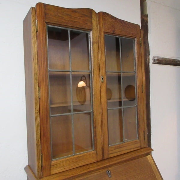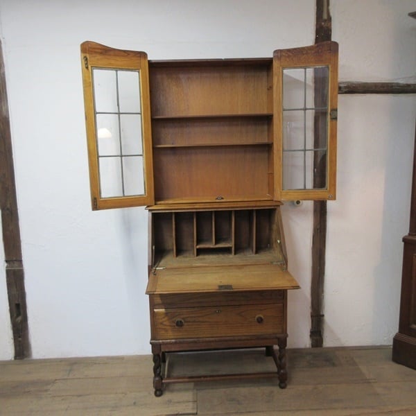 イギリス アンティーク 家具 ビューローブックケース デスク 本棚 机 収納 店舗什器 木製 オーク 英国 BUREAU 6168e