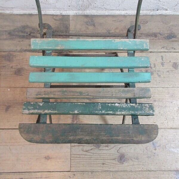 使い込まれた風合いが素敵なフォールディングチェアです。折りたためるのでもち運びにも便利ですね。