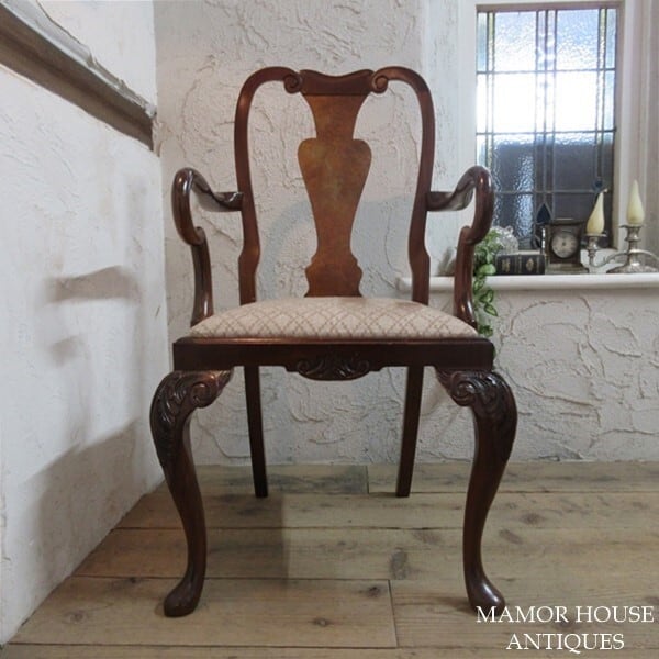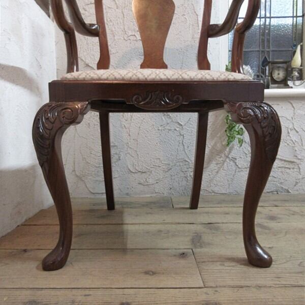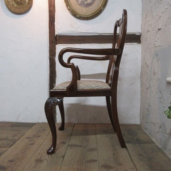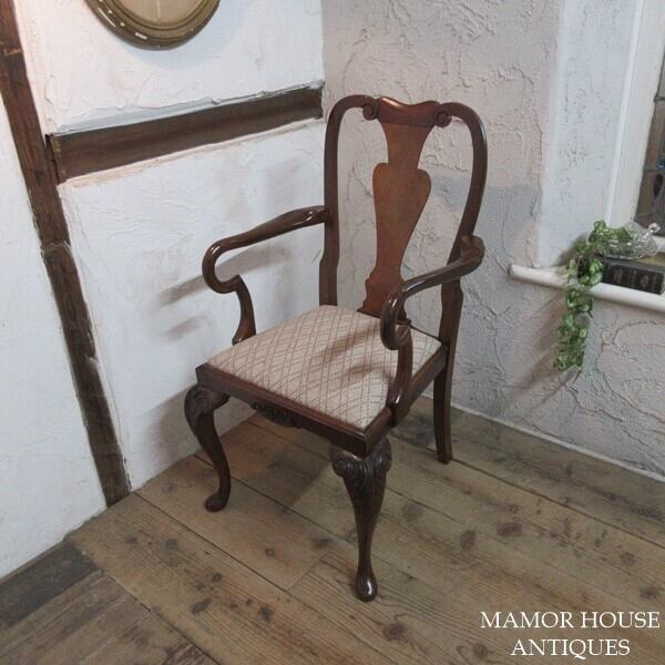 イギリス アンティーク 家具 アームチェア クイーンアンチェア 猫脚 椅子 イス 木製 ウォルナット 英国 QUEENANNCHAIR 4780e