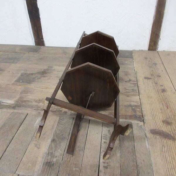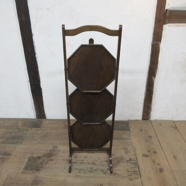 イギリス アンティーク 家具 ケーキスタンド 3段 折り畳み式 飾り棚 木製 オーク 店舗什器 英国 SMALLFUNITURE 6175e