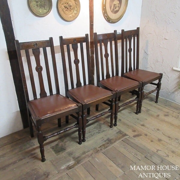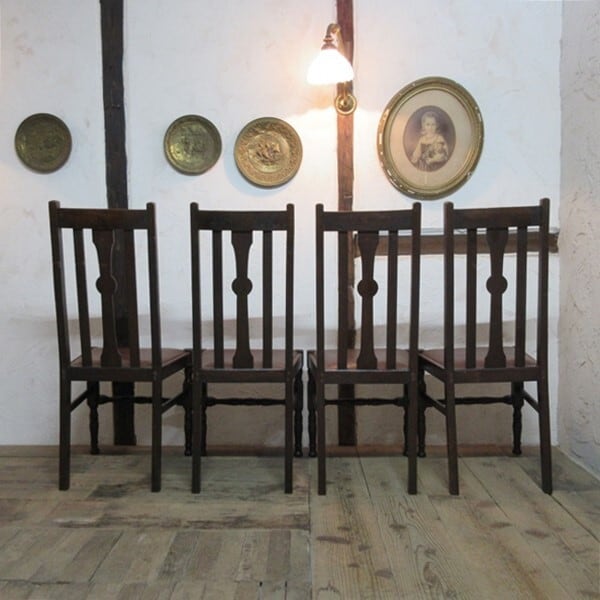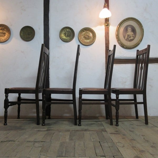 イギリス アンティーク 家具 ダイニングチェア 4脚セット イス ハイバック 木製 オーク 英国 DININGCHAIR 4790e