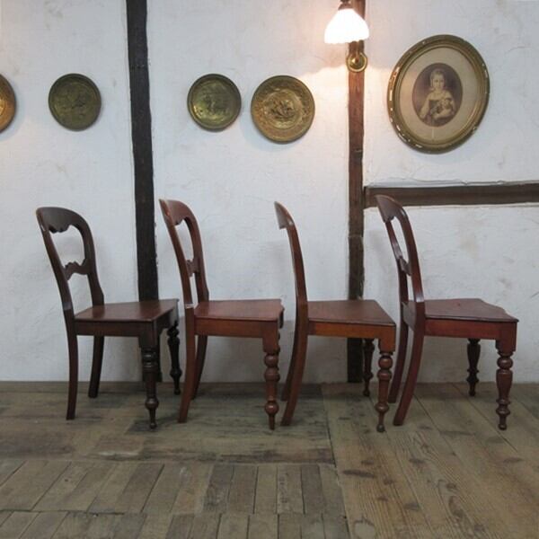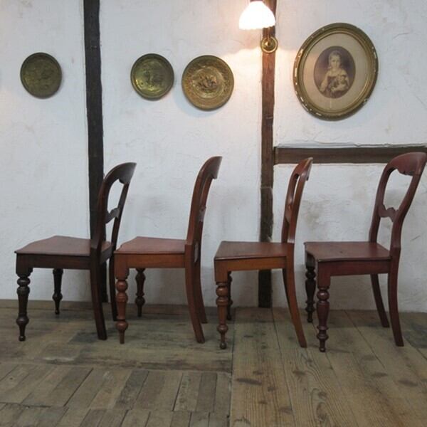 イギリス アンティーク 家具 カントリーチェア 4脚セット ホイールチェア 店舗什器 カフェ 木製 マホガニー 英国 OTHERCHAIR 4801e