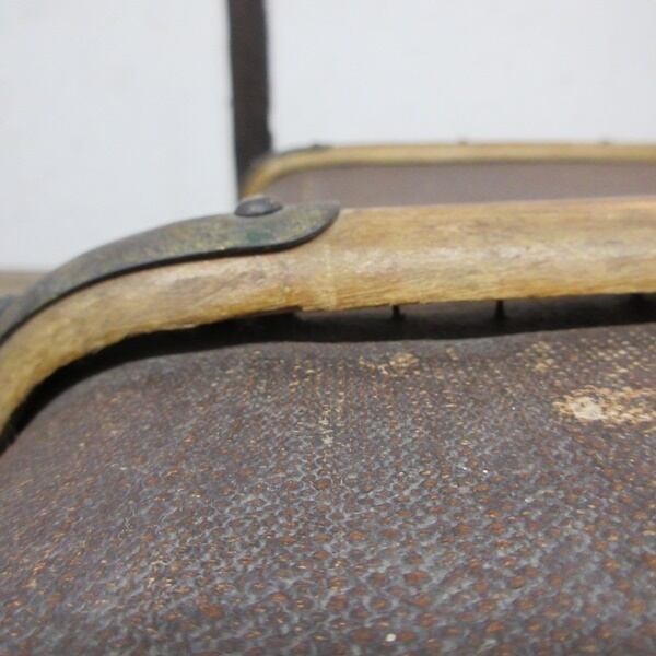 広げた中央の接続部分は金具が残っているもののレザーやファブリック部分が完全に切れております。
