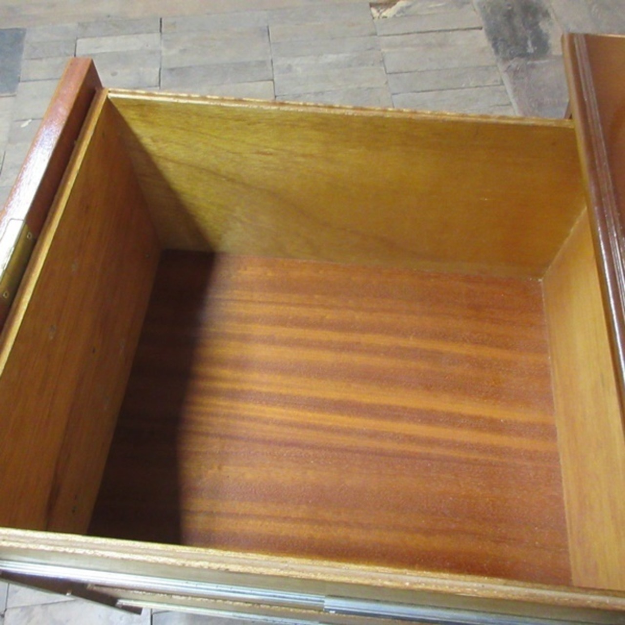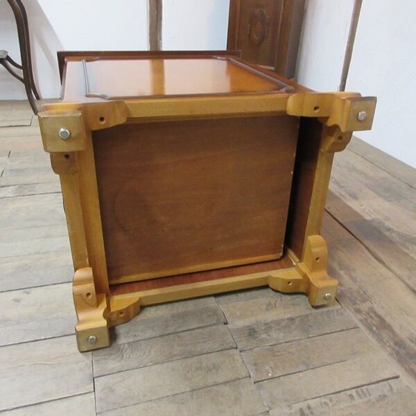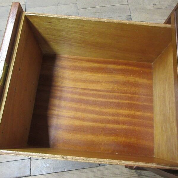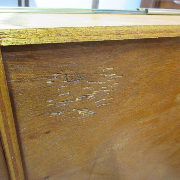 引き出しの両方の底板には元々のベニヤの虫食い跡がございます。(殺虫剤処理済)