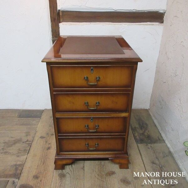 イギリス アンティーク 家具 ファイルキャビネット サイドチェスト 2段引き出し 収納 木製 イチイ 英国 OTHERFUNITURE 6189e