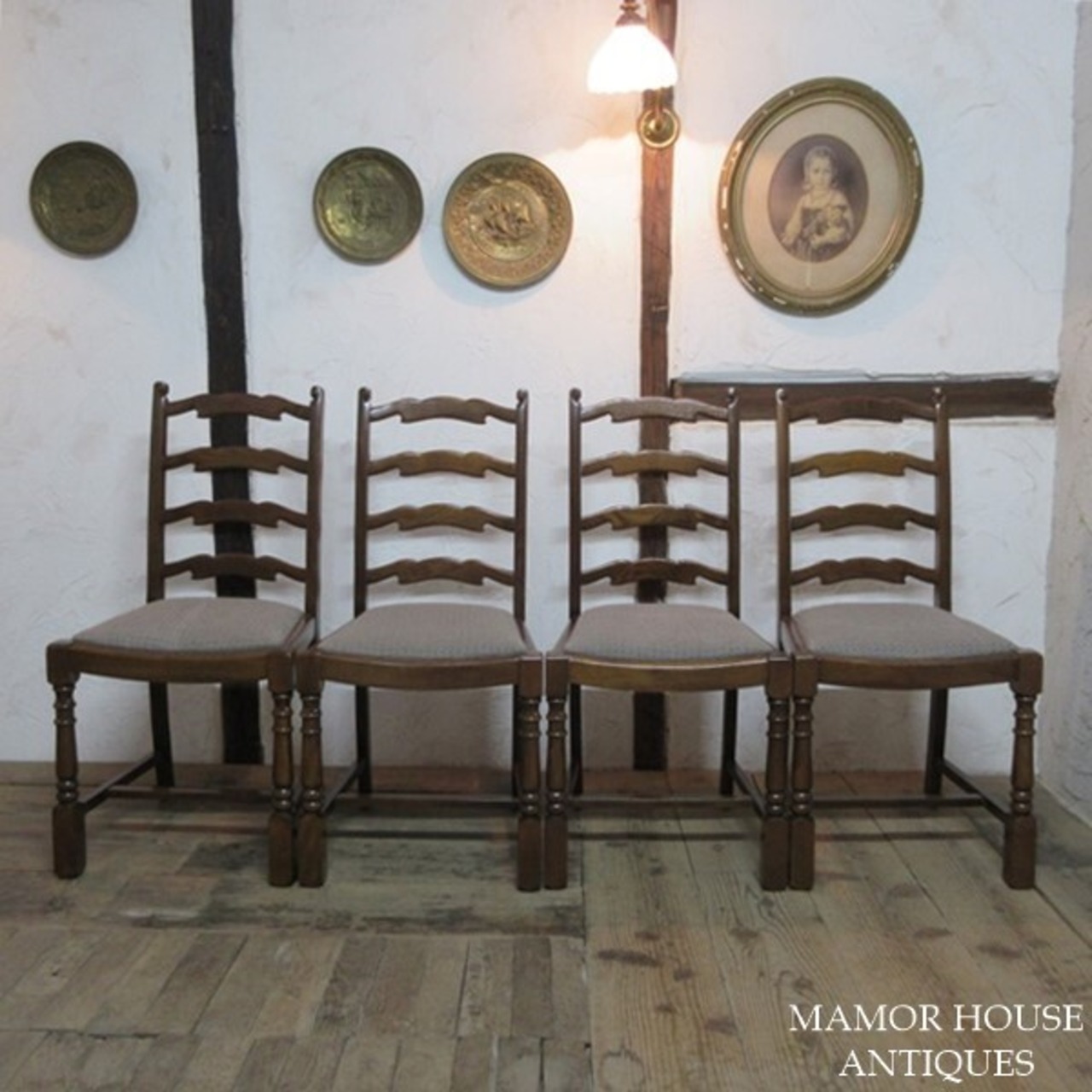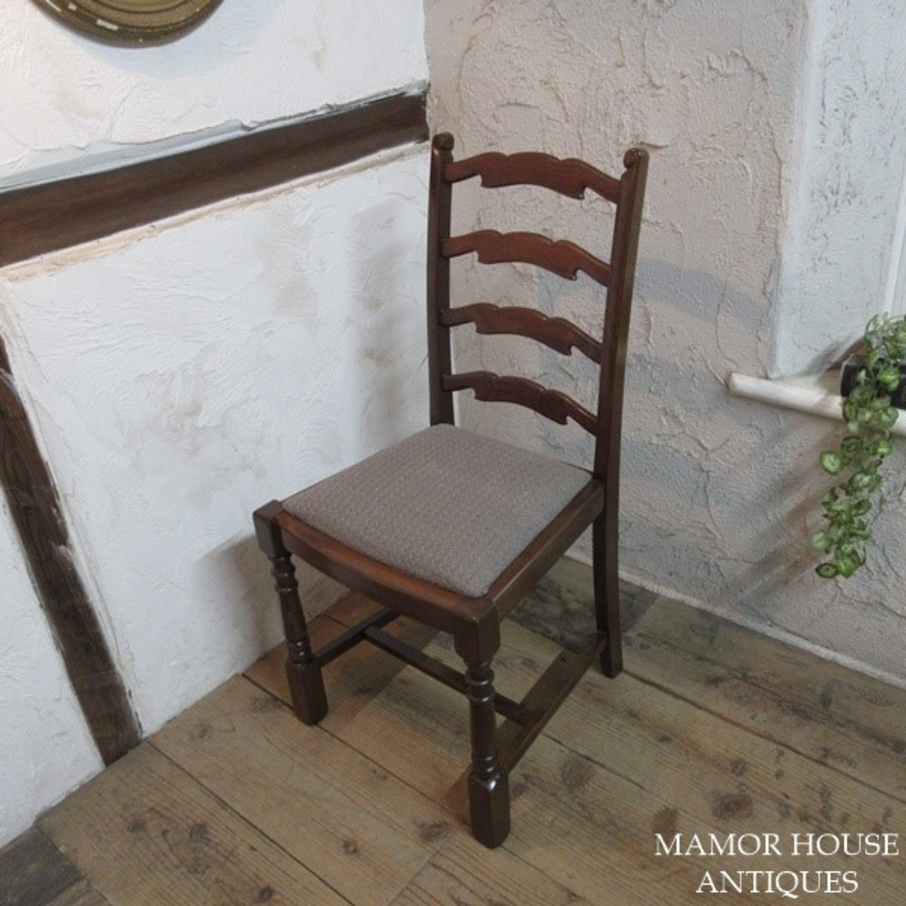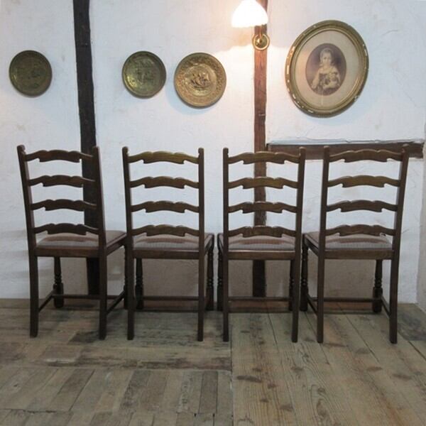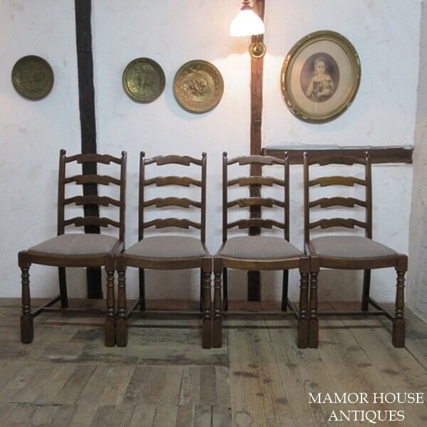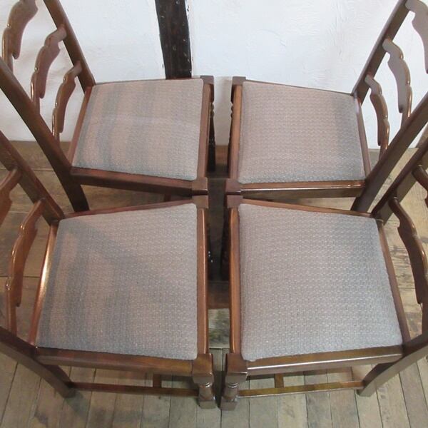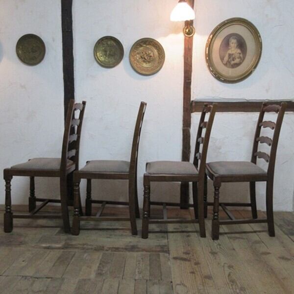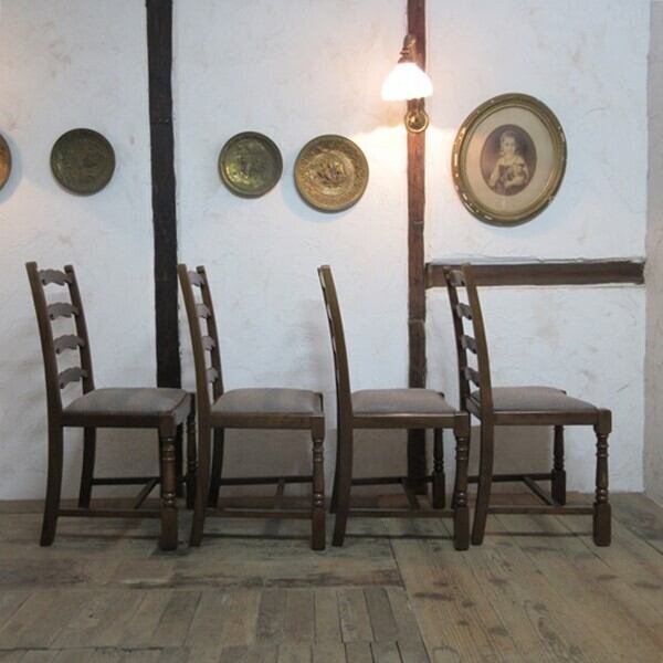 イギリス アンティーク 家具 ダイニングチェア 4脚セット 椅子 イス ラダーバック 木製 エルム 英国 DININGCHAIR 4804e
