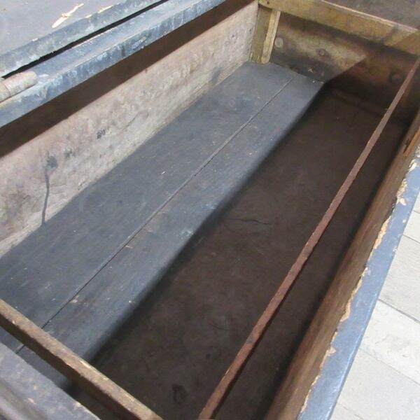 使い込まれた風合いがとても素敵です。お好みでキャスターを付けて便利な工具入れとして、またガーデニングのプランターとしてお使いいただいても良い雰囲気になりそうですね。