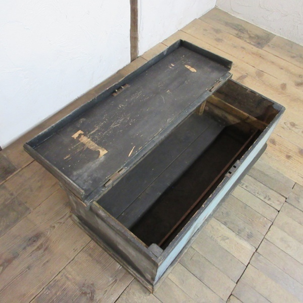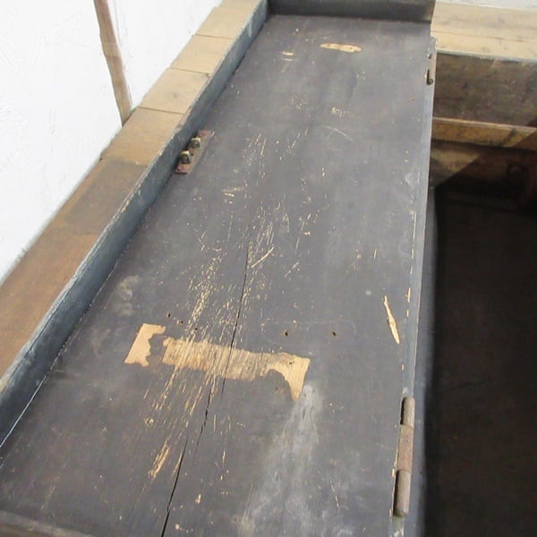 実際に工具入れとして使用されていたようで、底や底周りには黒い機械油と思われる汚れが見られ、匂いも残っております。