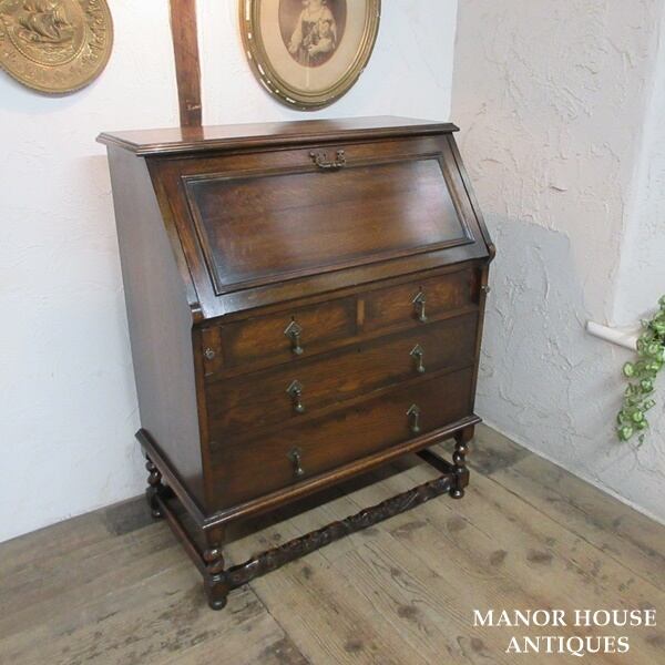 イギリス製 アンティーク 家具 Ray&Miles社 ライティングビューロー 本棚 机 1900年代頃 木製 オーク 英国 BUREAU 6197e
