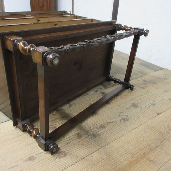 リバプールで創業したRay&Miles社。背面にラベルが残っております。美しい木肌のブリティッシュオークを使用し、細部にまで施された細かな装飾が魅力的なお品です。
