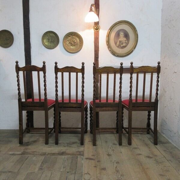 イギリス アンティーク 家具 ダイニングチェア 4脚セット 椅子 イス 店舗什器 カフェ 木製 オーク 英国 DININGCHAIR 4811e