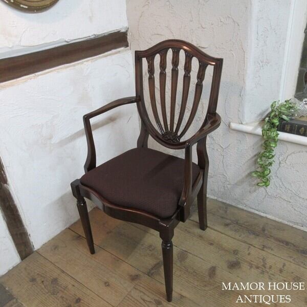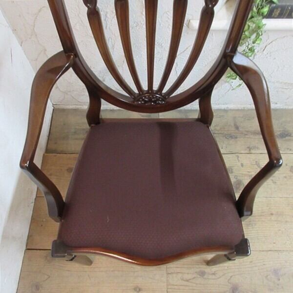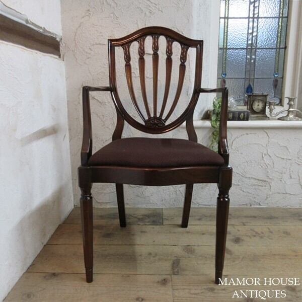 イギリス アンティーク 家具 アームチェア ダイニングチェア ヘップルホワイト 木製 マホガニー 英国 DININGCHAIR 4815e