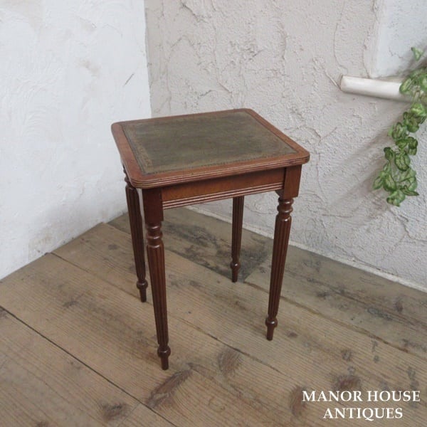 イギリス アンティーク 家具 サイドテーブル レザートップ ミニテーブル 飾り棚 花台 木製 マホガニー 英国 SMALLTABLE 6200e