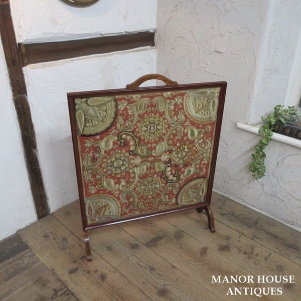 イギリス アンティーク 家具 ファイヤースクリーン 衝立 パーテーション ガラス 刺繍 木製 英国 SMALLFUNITURE 6211e