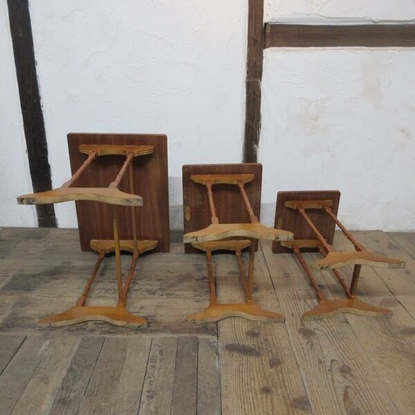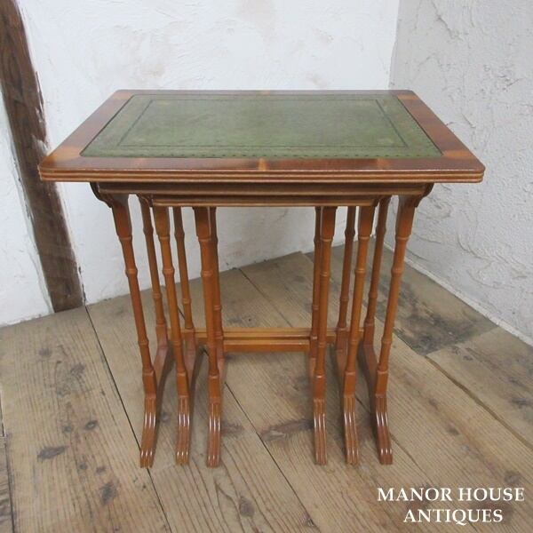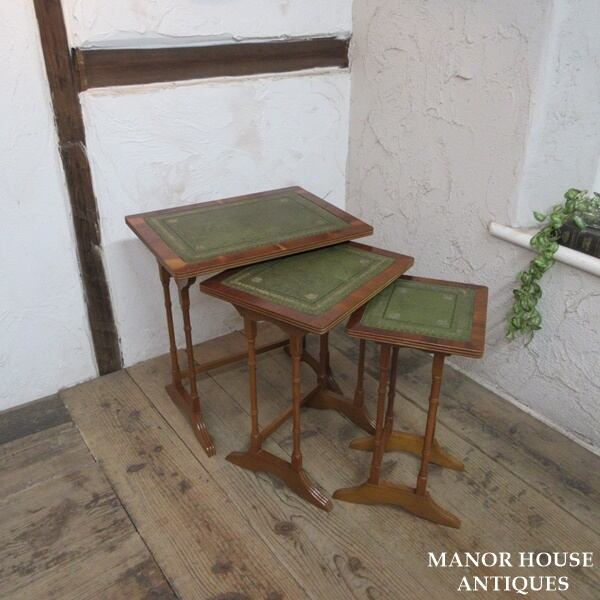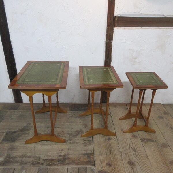 イギリス アンティーク 家具 ネストテーブル サイドテーブル 入れ子式 3台組 花台 木製 イチイ 英国 SMALLTABLE 6226e