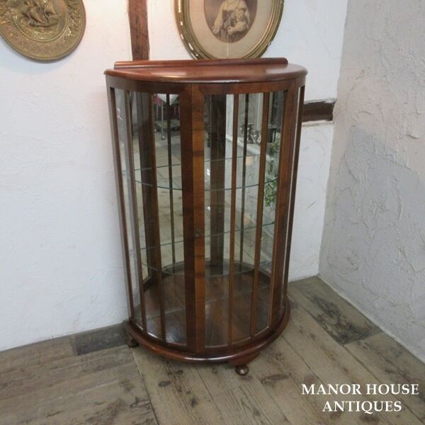 イギリス製 アンティーク 家具 ディスプレイキャビネット ガラスキャビネット 飾り棚 木製 ウォルナット 英国 CABINET 6228e