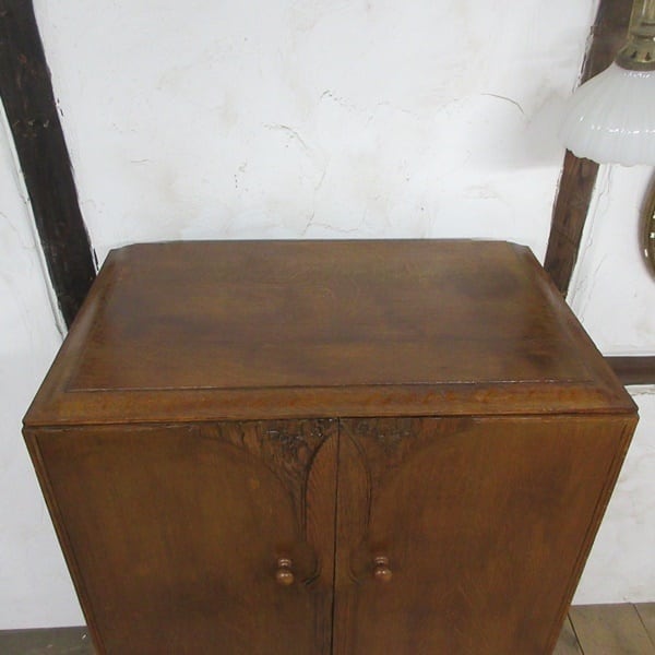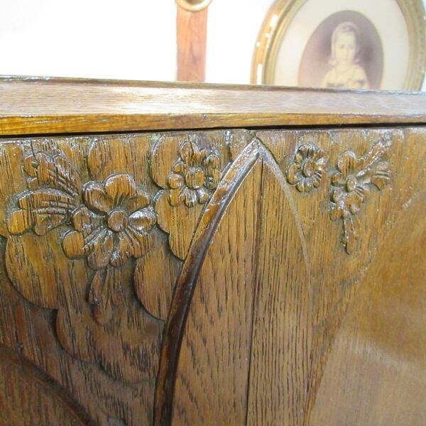 ワードローブとしては背が低めのタイプ。扉にはアクセントとなるお花の彫りが施されており、可愛らしさもございます。小振りながら重厚なお品です。