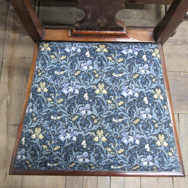 ウィリアム・モリスのデザイン「アイリス(Iris)」のプリント生地を座面に張り替えいたしました。