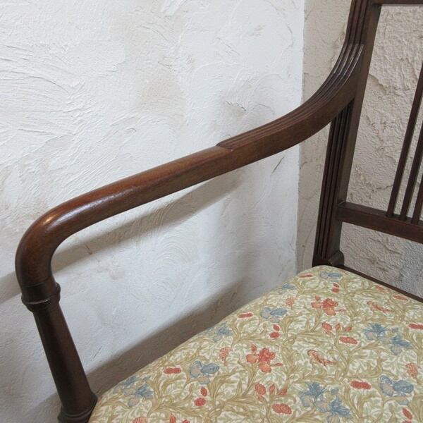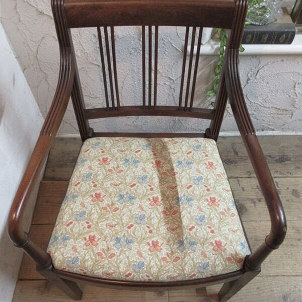 ウィリアム・モリスのデザイン「アイリス(Iris)」のプリント生地を座面に張り替えいたしました。