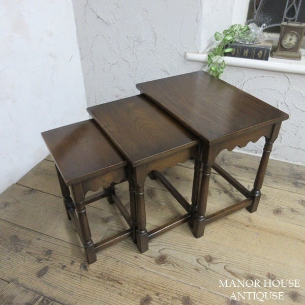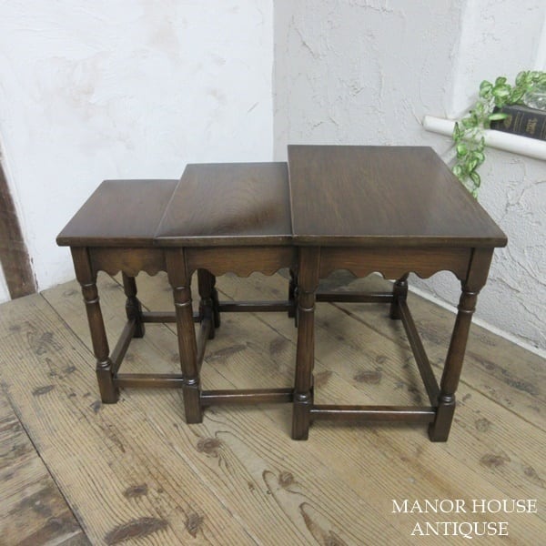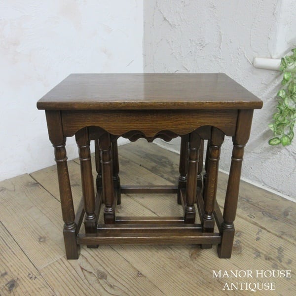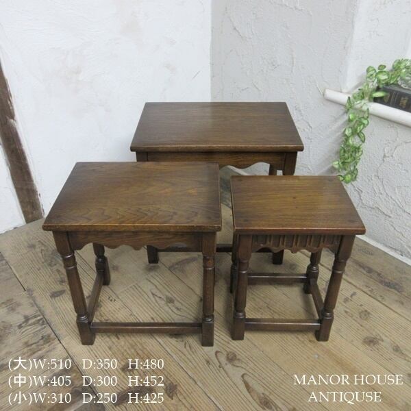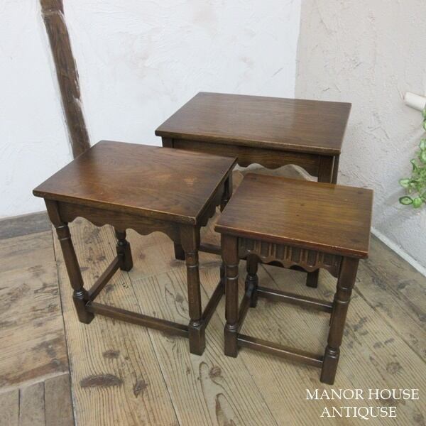 イギリス アンティーク 家具 ネストテーブル サイドテーブル 入れ子式 3台組 花台 木製 英国 SMALLTABLE 6164d