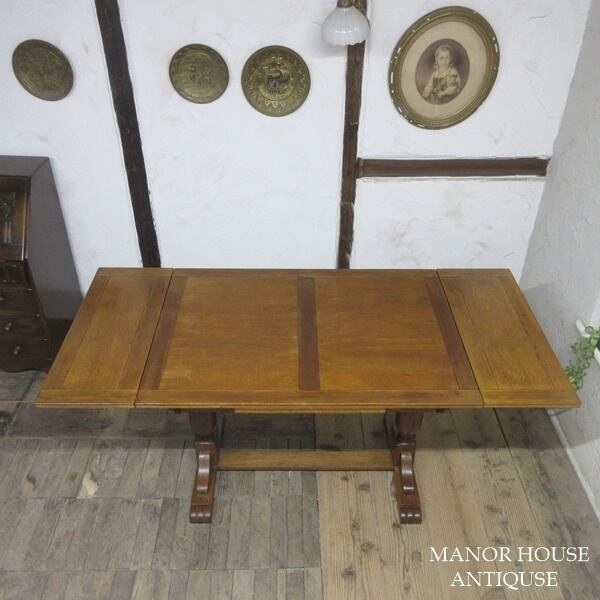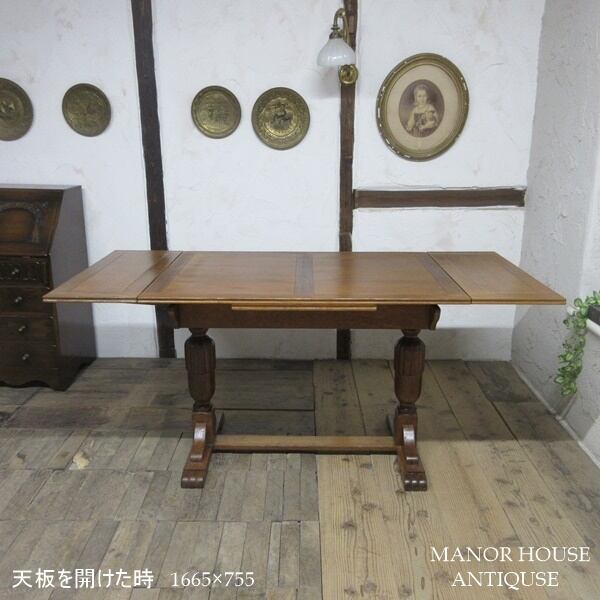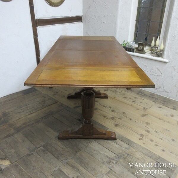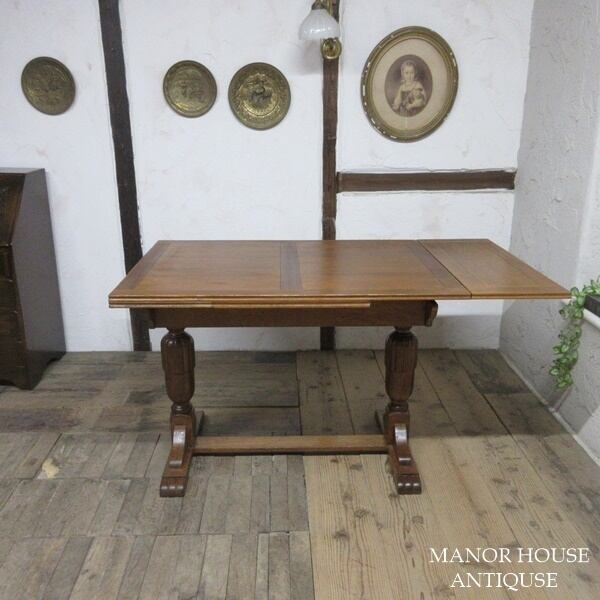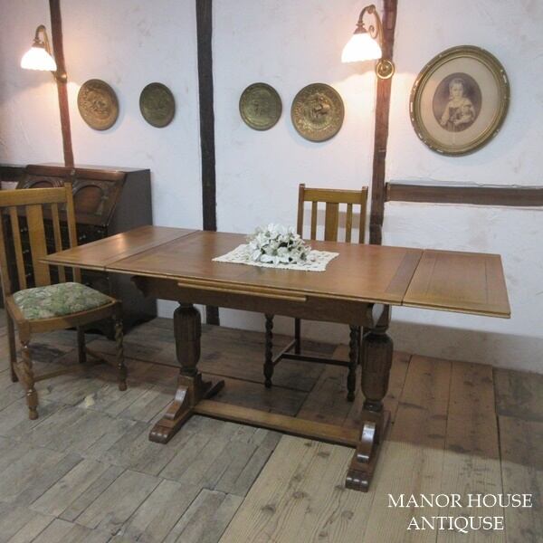 イギリス アンティーク 家具 ダイニングテーブル ドローリーフテーブル 拡張天板 木製 オーク 英国 TABLE 6239d