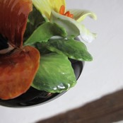 陶花とは、陶磁器製の花飾りです。英国公式の食事会では、花びらが落ちることを避けることから、食事中は陶花を飾り、食後に生花を飾ります。
