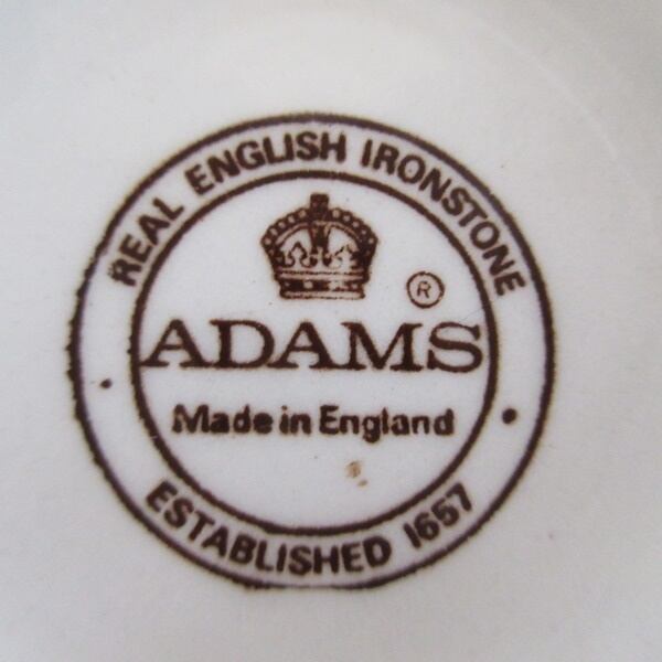 William Adams and Sons社は、「陶器の里」として有名なストーク・オン・トレントのsix townsの1つであるTunstall &Stokeにて1769年に設立しました。ロバート・アダムズと息子のジョンが前身のブリックハウス陶器を設立したのが1657年ということもあり、 後のウィリアム・アダムス&サンズの商標の多くには『ESTB 1657』が含まれています。