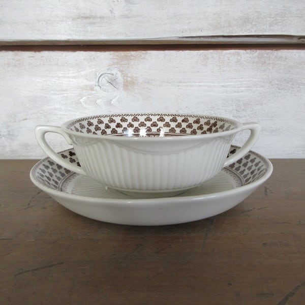 イギリス製 William Adams and Sons シャロン クローバー柄 ソーサー付き スープカップ 両手 ヴィンテージ 英国 tableware 1153sc