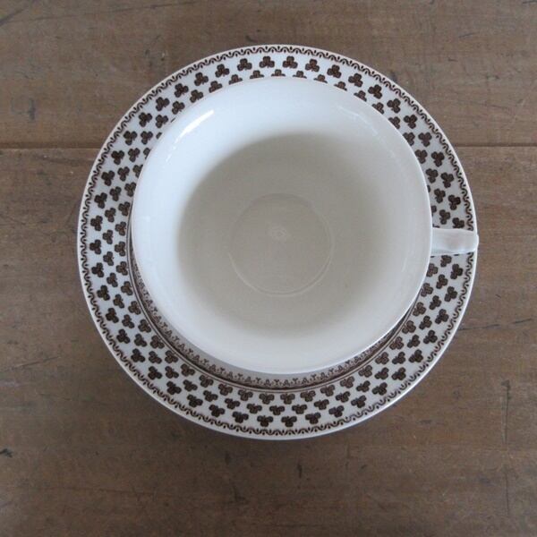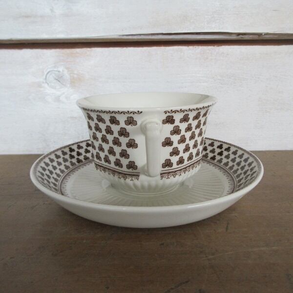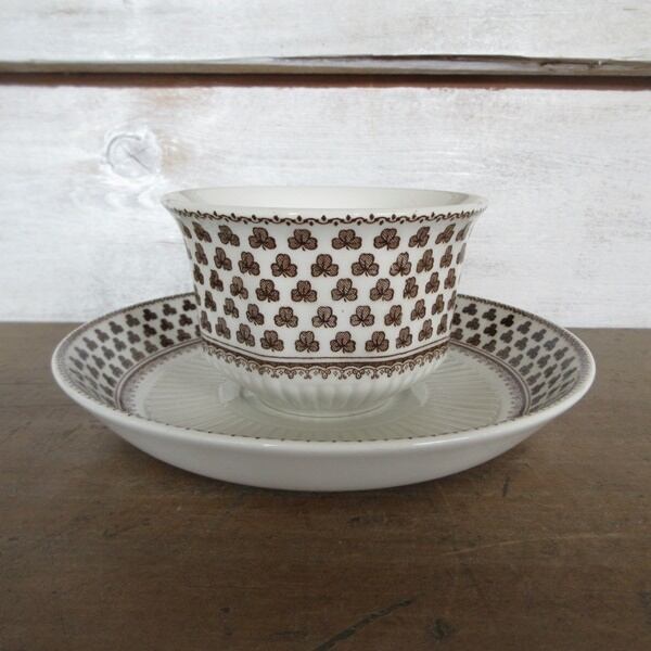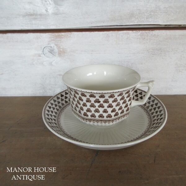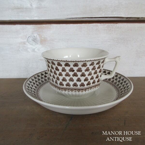 イギリス製 William Adams and Sons シャロン ブラウン クローバー柄 カップアンドソーサー ヴィンテージ 英国 tableware 1154sc