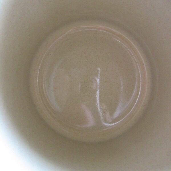 ダークブラウンの陶器にクリーム色の釉薬がかかり、ムギナデシコの絵柄が入っています。
