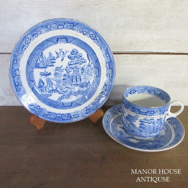 イギリス製 Samuel Radford Ltd ブルーウィロー カップアンドソーサー プレート 1913〜1924年 アンティーク 英国 tableware 1218sc | Manor House Antiques