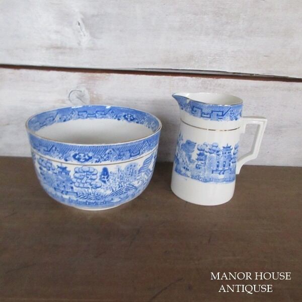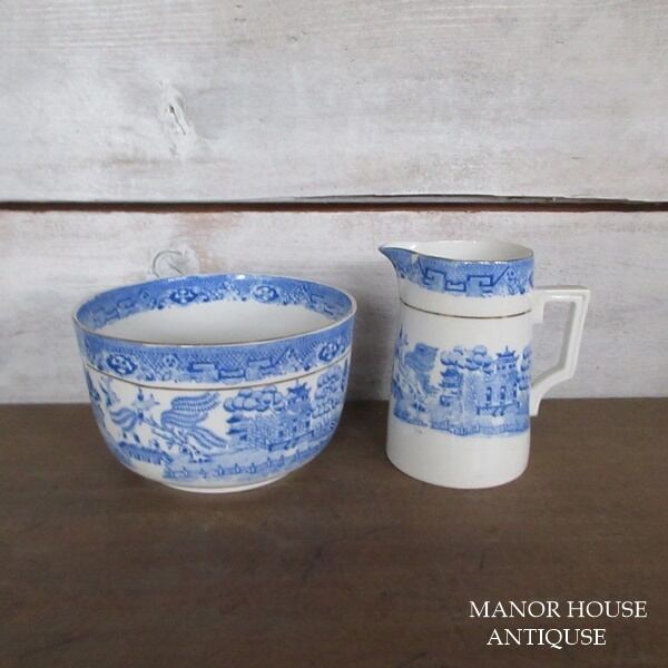 イギリス製 Samuel Radford Ltd ブルーウィロー シュガーボウル クリーマー 1913〜1924年 ディスプレイ用 英国 tableware 1221sc