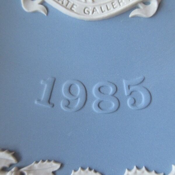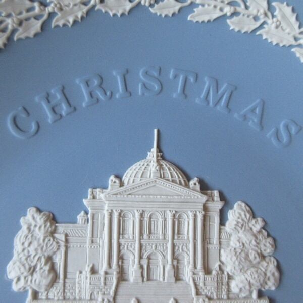 ウェッジウッドのクリスマスプレートは、ロンドンまたはロンドン近郊の有名なランドマークの細かくモデル化された白いジャスパーの浅浮き彫りで飾られています。1985年の記念プレートで、1897年から1932年まではナショナル・ギャラリー・オブ・ブリティッシュ・アートとして、1932年から2000年まではテート・ギャラリーとして知られていたテート・ブリテン(美術館)がデザインされています。